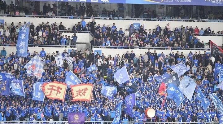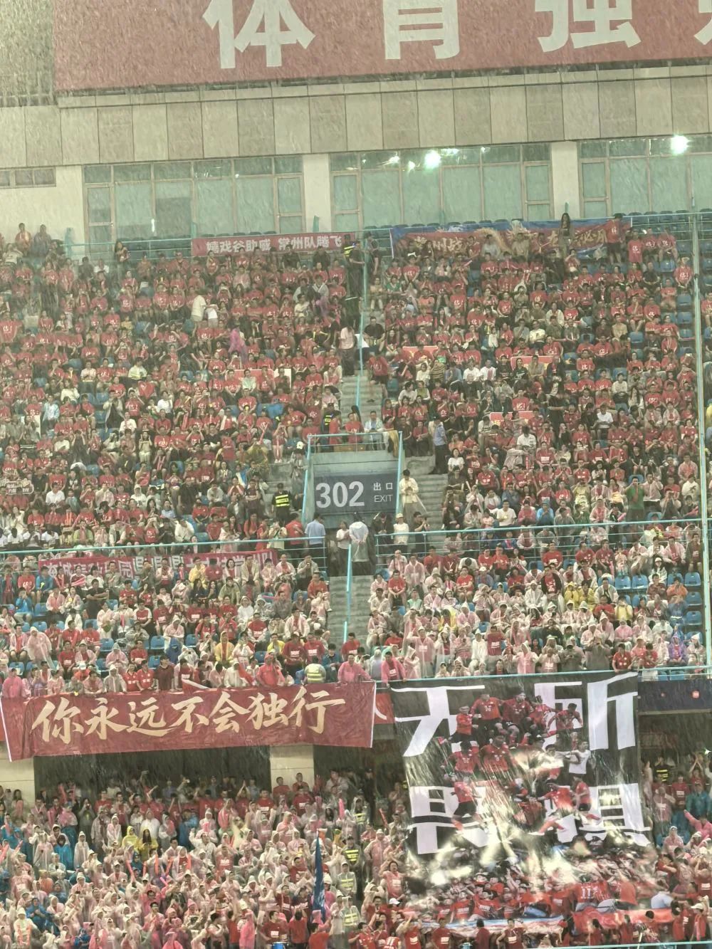 10月18日,球迷在赛场边加油助威。新华社发 (刘臻睿 摄)