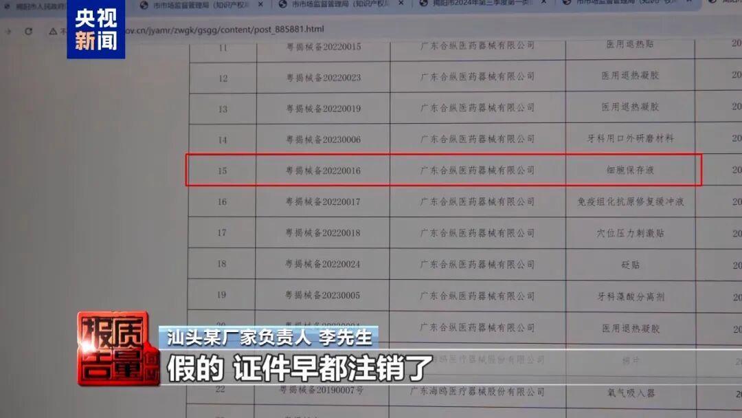 记者对一款标注“械字号”的产品展开调查,根据产品包装上标明的编码,找到了该编码的实际注册人。对方回复称,有人在冒用证件。“证件早注销了,他们胆子也真大,冒用名义做的,我们在找证据告他。”